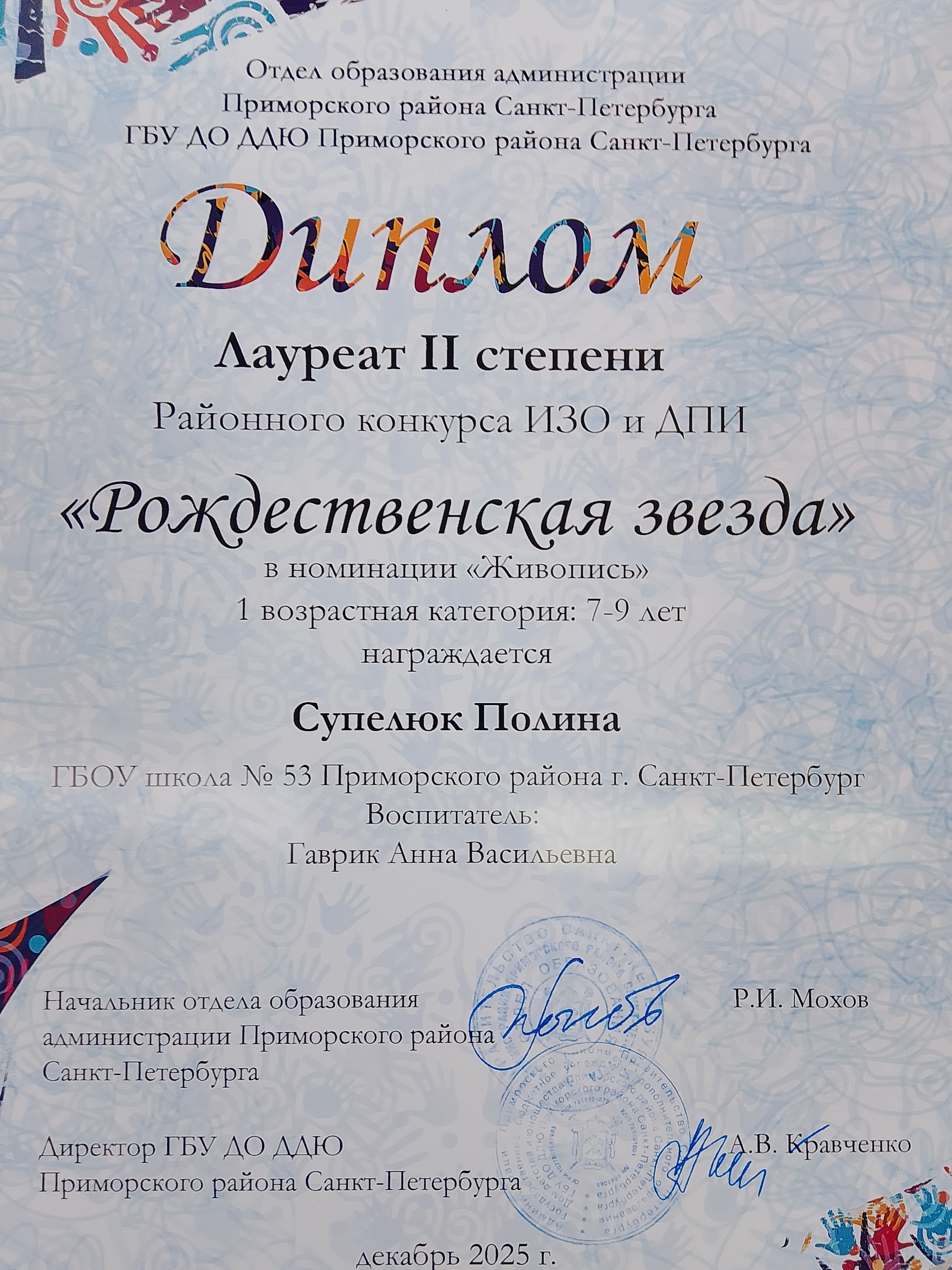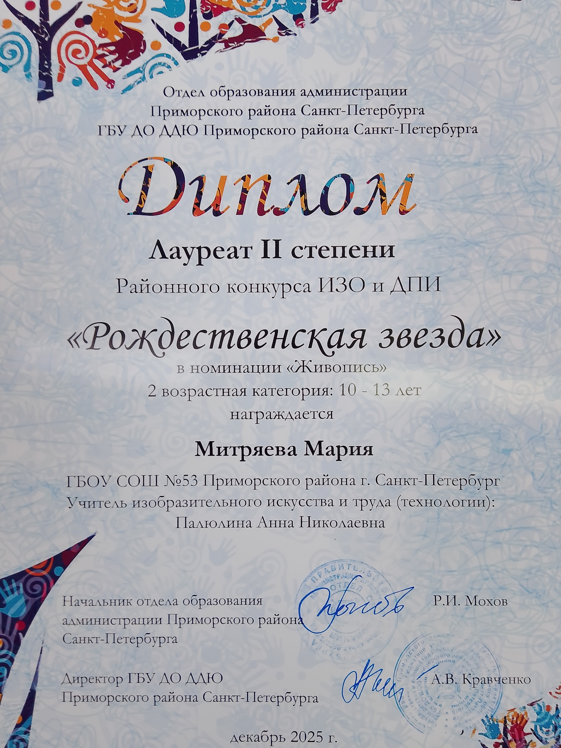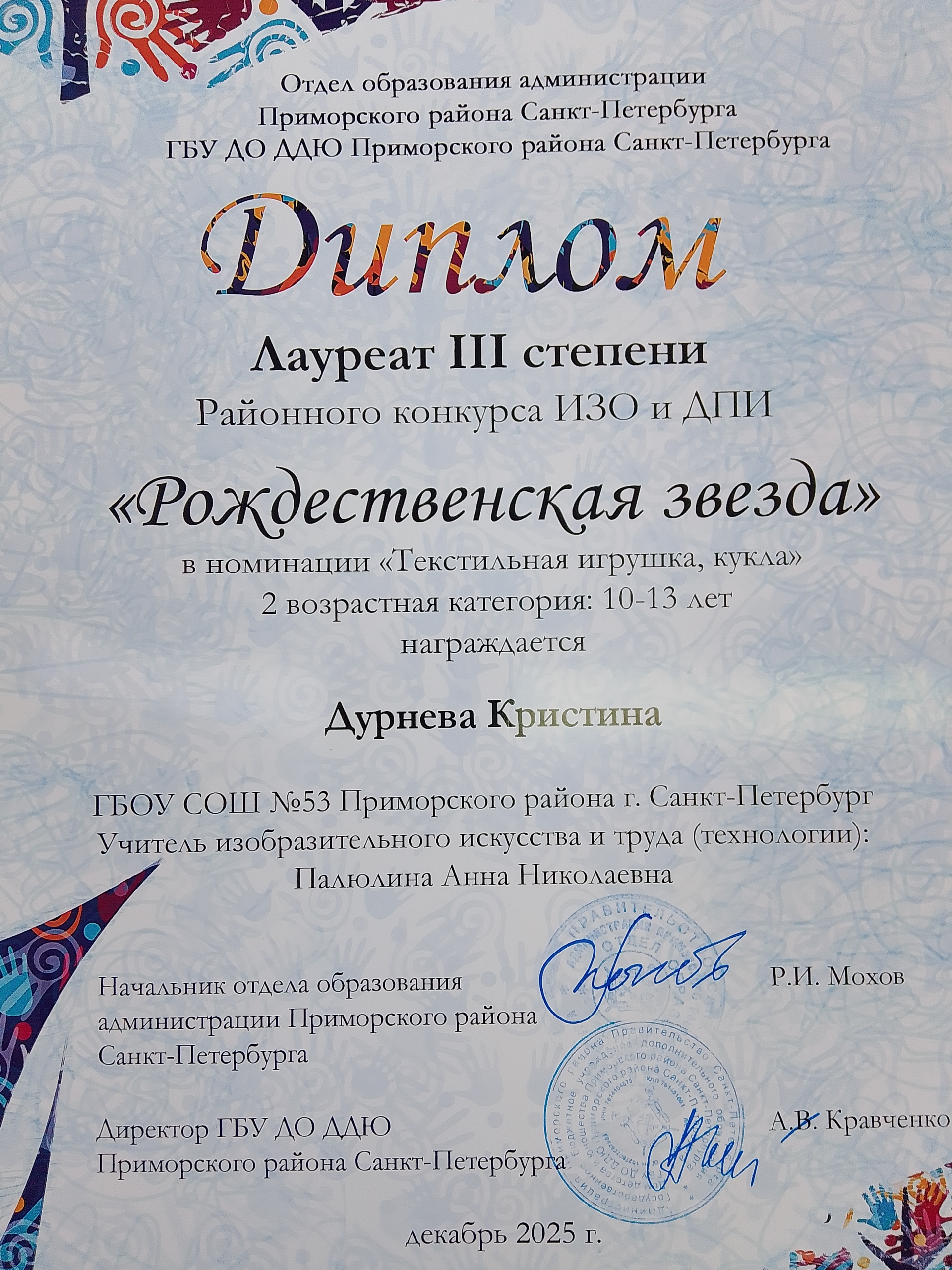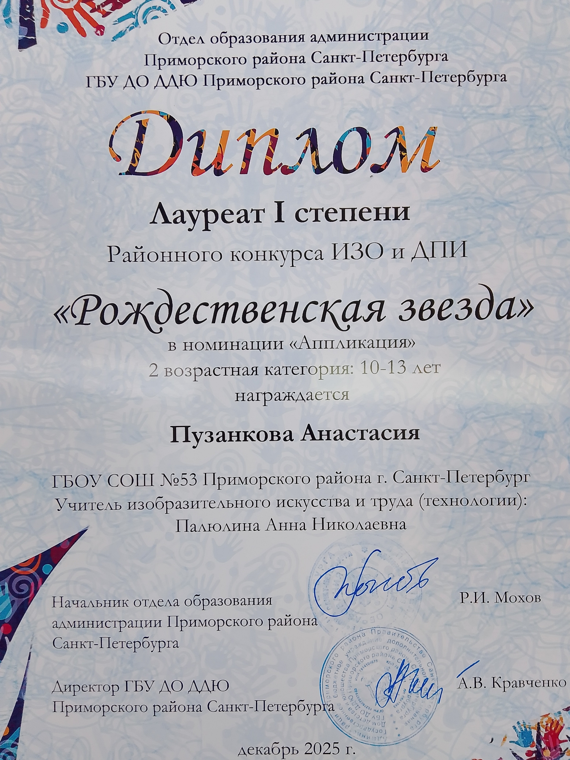 Поздравляем победителей районного конкурса ИЗО и ДПИ "Рождественская звезда"!